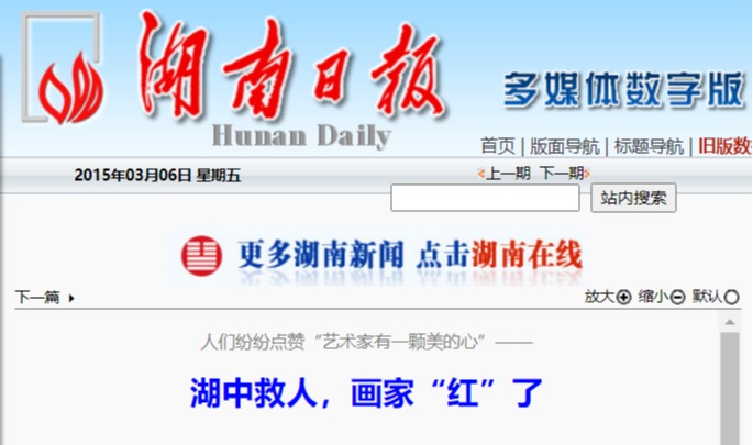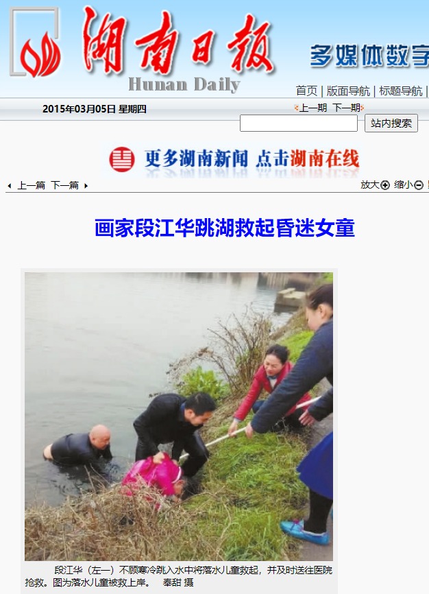 湖南日报记者 李国斌 3月5日,湖南日报报道了湖南画家段江华等救人的事迹,引起社会强烈反响。