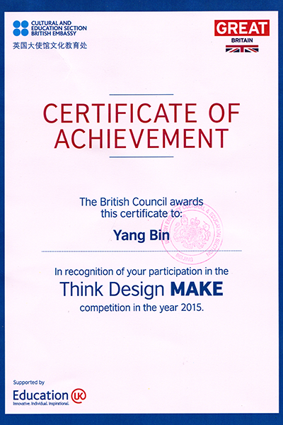 “思·策·行”设计大赛奖状 阳斌的参赛设计方案“A living bridge” 阳斌与英国当代著名设计师赫斯维克分享自己的作品 近日,公司环境艺术设计系阳斌同学的设计方案“A living bridge”(一座活着的桥)喜获英国大使...
