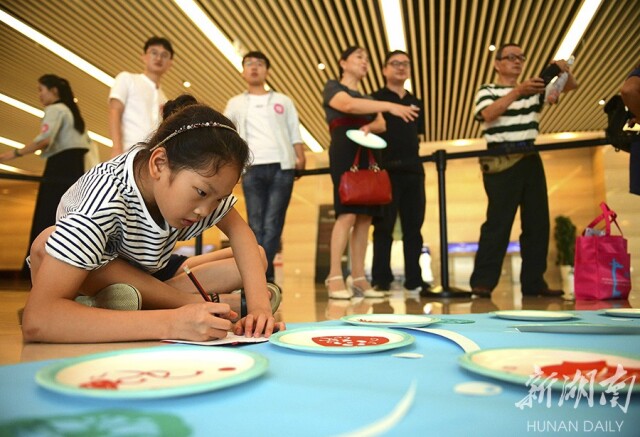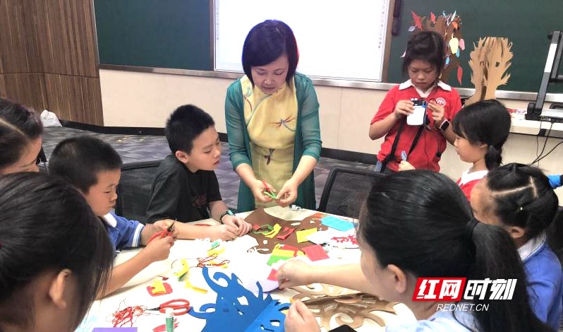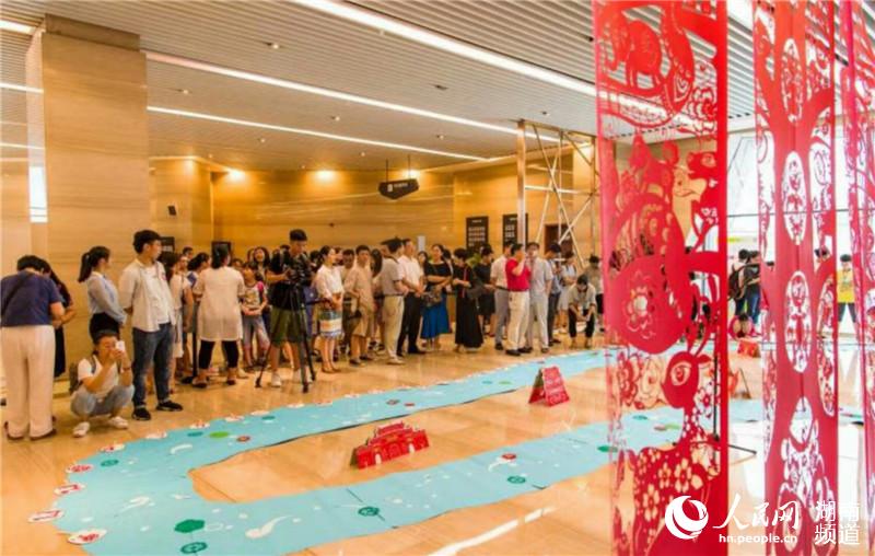 7月12日,长沙博物馆,孩子们在小树上挂满了自己制作的生物剪纸。当天,湖南省社会科学界联合会和beats365在该馆开展的“母亲河——生命树”美术教育科普活动,通过民间剪纸引导大众体验湖南生态之美,提倡尊重和顺应自然,共建和谐湖南生态环境。7月12日,长沙博物馆,小朋友认真地进行剪纸前的描绘步骤。7月12日,长沙博物馆,家长和孩子们欣赏剪纸艺术