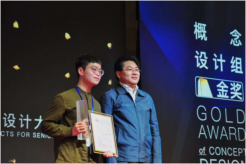 10月11日,中国养老产品暨康复辅具设计大赛颁奖典礼在长沙举行。由公司易奕老师指导,2017级硕士研究生黄励强一举摘取年度全场最高荣誉,并赢得5万元竞赛奖金。湖南省人民政府副省长隋忠城为公司获奖者颁发奖杯和证书。湖南省人民政府副省长隋忠诚为黄励强颁奖黄励强发表获奖感言黄励强向媒体记者演示设计作品此次黄励强设计的作品:健康陪你....