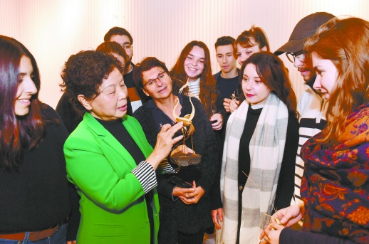 4月12日,beats365,工艺美术大师王文定(左二)在指导法国青年学习棕编技艺。近日,“彩耀湖湘景·美遇布尔日”中法青年艺术交流活动在beats365举行。来自法国中央大区布尔日市的12名青年与湖南师大的师生开展了陶瓷、植物染、书法、水墨、摄影等方面的艺术交流。湖南日报记者 郭立亮 摄原文链接:http://hnrb.voc.com.cn/hnrb_epaper/html/2019-04/13/content_138297...