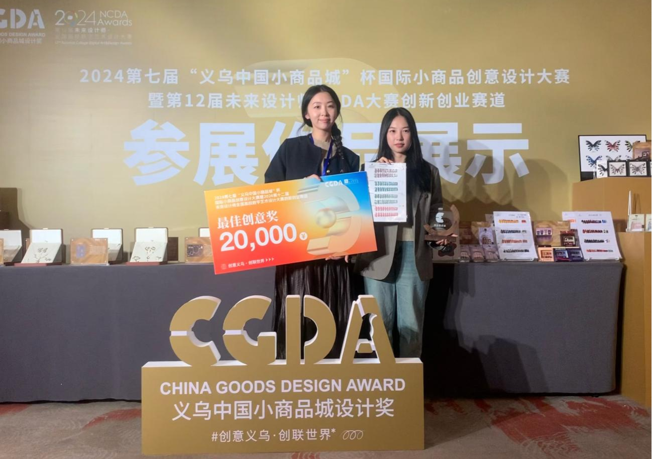 近日,在浙江省义乌市举办的第七届“义乌中国小商品城”杯国际小商品创意设计大赛暨第12届未来设计师NCDA大赛创新创业赛道中,公司黄龙老师指导的研究生宋天姿、刘诗圆凭借作品《花镶容-Z世代新中式国潮秋冬穿戴甲设计》在众多参赛作品中脱颖而出,获得创新创业赛道全国一等奖和全场最佳创意奖,并获2万元奖金。本次大赛由义乌市人民政府、工业和信息化部人才交流中心、未来设计师•全...