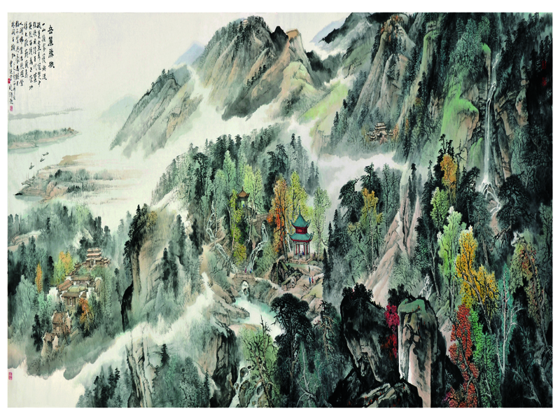 《岳麓胜概》 2012年 1米6*5米 此幅大画装饰在毛主席纪念堂湖南厅