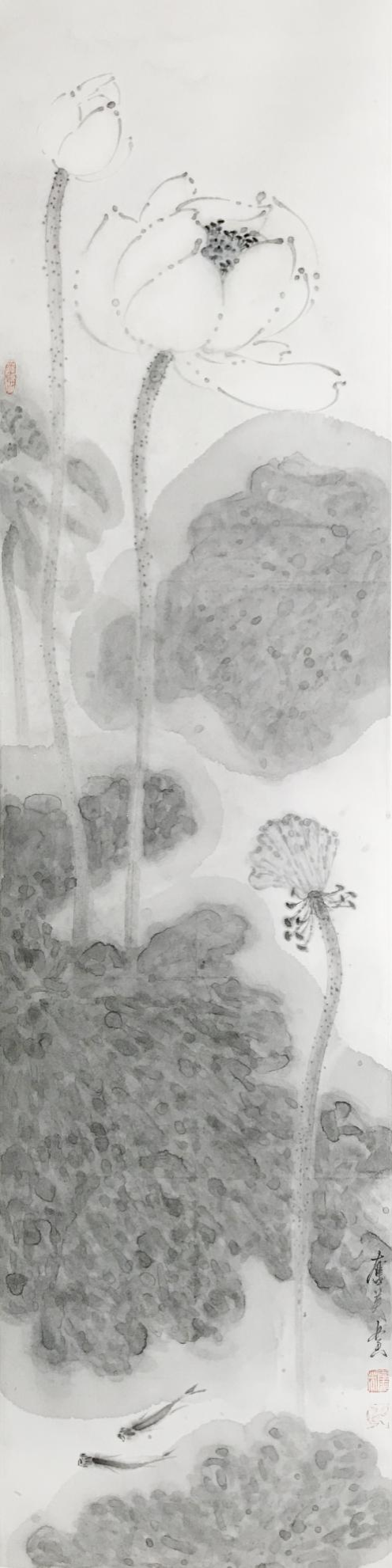 水墨清荷系列之六 中国画 136x35cm 纸本水墨 2018年 王奋英