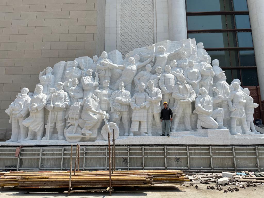 集体创作 《伟业》 汉白玉 1500cm ×500cm×800cm 2021年 于中国共产党历史展览馆