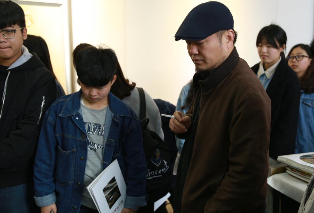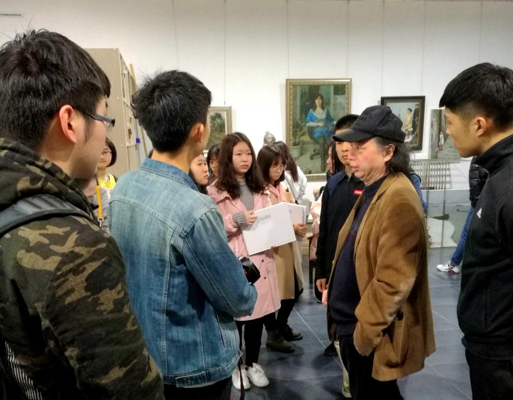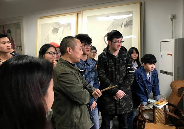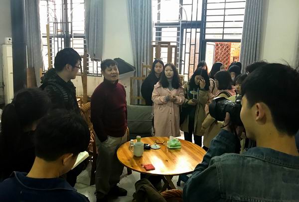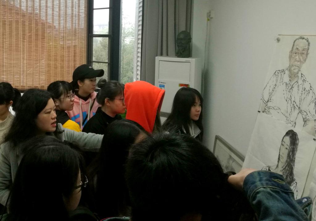 春雨淅淅沥沥,古樟已发新芽,绿树掩映的工作室,散发浓郁的艺术气息,一派生机盎然。2016级绘画系全体新生在班导师王奋英、罗葳的组织下,陆续参观了朱训德、陈和西、曲湘建、段江华、党朝阳、曾进、吴荣光、王奋英等专家教授的工作室。艺术工作室的专家教授们与同学们畅谈艺术观点与见解、分享艺术创作体会,同时,对同学们当下及今后的专业学习提出可行建议。朱训德教授谈到艺术创作应在人生不同阶段始终保持创新精神,对待专业学习要专注、有恒心与毅力;陈和西教授强调绘画艺术要追求精益求精的工匠精神与动手能力的重要性;段江华教授建议绘画专业员工多外出写生,感受与体悟生活;吴荣光教授认为绘画系员工要在艺术道路上有所成就,必定要有发自内心对绘画的强烈热爱与执着,兴趣是最好的导师,并对中国工笔画的艺术欣赏与技法语言作了细致解答。