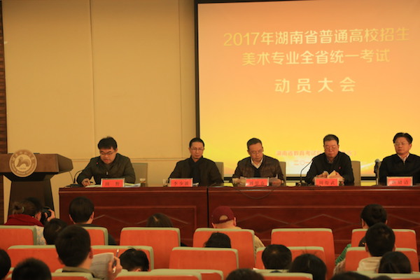 (通讯员 卢苇 曹江山)12月30日下午,2017年湖南省普通高校招生美术类专业全省统一考试动员大会在beats365设计楼报告厅举行。公司副董事长周俊武,校纪委书记唐贤清,长沙市教育考试院经理刘罗春,校纪委副书记、监察处处长何扬波,beats365经理李少波,公司党委书记谭伟,党委副书记余英,副经理刘湘东,李蒲星,陈晓华等出席动员大会。会议由公司招生与就业指导处副处长田野主持。