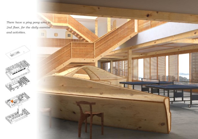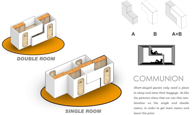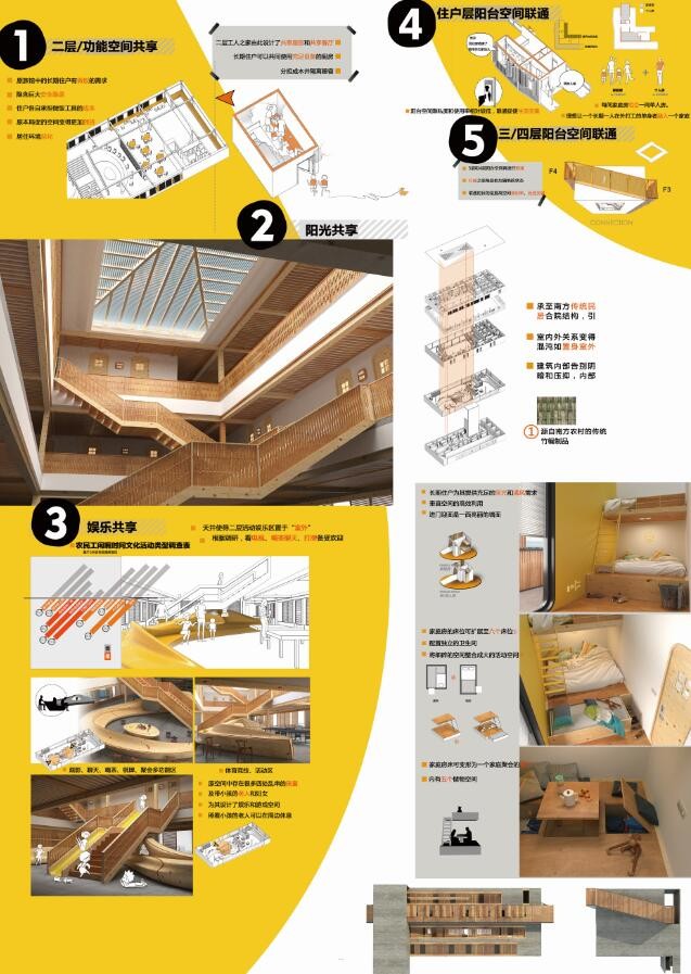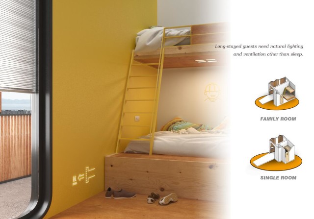 低价是工人们另一个重要诉求。设计团队在设计上特别关照这一点,所以设计的房间小,有的房间还使用了错层设计,既节省空间,又能让睡觉干净舒适。与之相反的,他们把省下的空间都做成公共空间,同时更加注重公共空间的丰富性,因此工人们在公共空间中可以社交、做饭,甚至是运动。