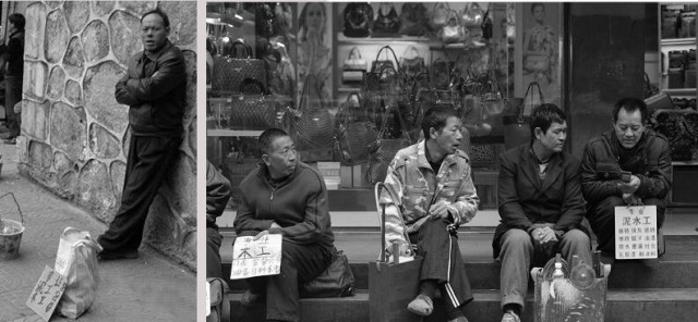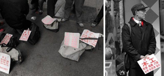 “砼”是指混凝土,而“砼人”就是从事相关行业的人员。在走访、暗访的过程中,员工们经常看到带着“木工”、“水电工”、“泥水工”牌子的工人在这一代游荡,后来一问才知道,社区所在附近曾是国办的招工场所,搬迁后,工人们还是习惯在这里等工,而长沙市民也喜欢来这里寻找工人,一来一去,这里形成了一个默认的劳务集散地。