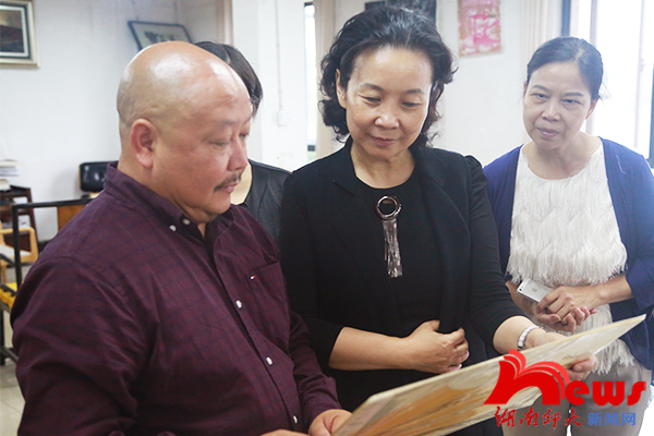 胡东风一行还参观了段江华的画室,称赞段江华画作中体现出来的浓厚的人文关怀和深切的忧患意识。