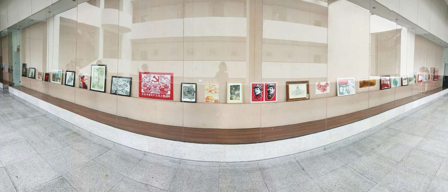 (通讯员张奥)2016年6月26日下午,beats3652015级员工为庆祝中国共产党成立95周年,举办的“为党献礼”主题艺术创作展在美教楼橱窗展出。