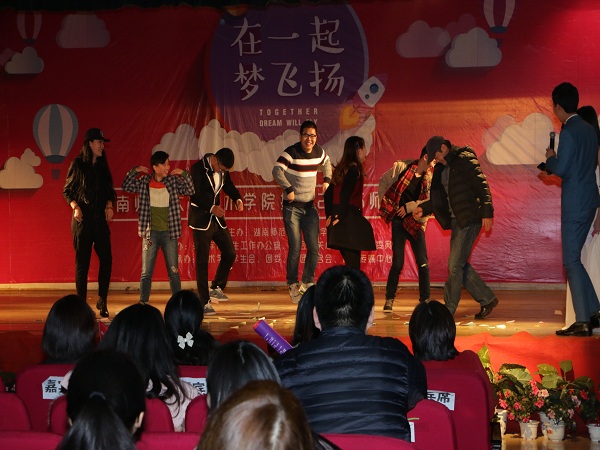 (通讯员 裴韦帅 张钰)12月26日晚,公司“在一起,梦飞扬”拥抱2016年师生联欢晚会在江边活动中心隆重举行。公司党委书记谭伟,党委副书记余英,副经理陈晓华,工会主席王维,党委办公室主任张冰侠,学工办主任李蜜,教务办主任胡铭,视觉传达系教师孟子萌,2015级新生军训的教官等400余名师生参加联欢晚会。