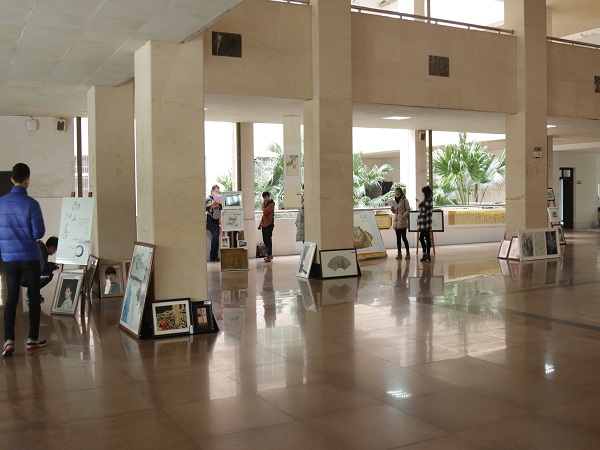 此次“江山如此多娇”艺术作品大赛独具美院特色,共展出50余幅优秀作品,风格迥异,各具特色,有油画、国画、水彩、书法、剪纸、雕塑、摄影等多种类型,引得数人驻足观看。