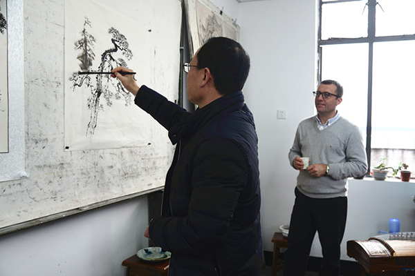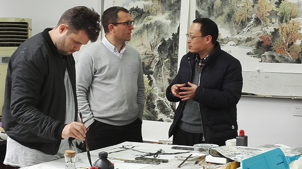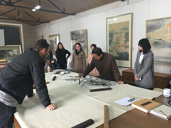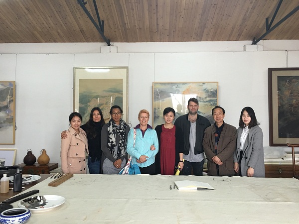 根据两校交流项目安排,公司4名学子于2015年10月12日-21日赴悉尼大学美院交流学习。该校4名学子于11月30-12月9日来公司进行10天交流学习,公司请了省美协主席、公司博士生导师朱训德教授、曾进、江波老师为他们了国画、书法等大师创作示教。让他们亲身体验了中国国画笔墨浓淡相宜的艺术魅力。并将安排外出采风及本地民俗文化考察等活动。