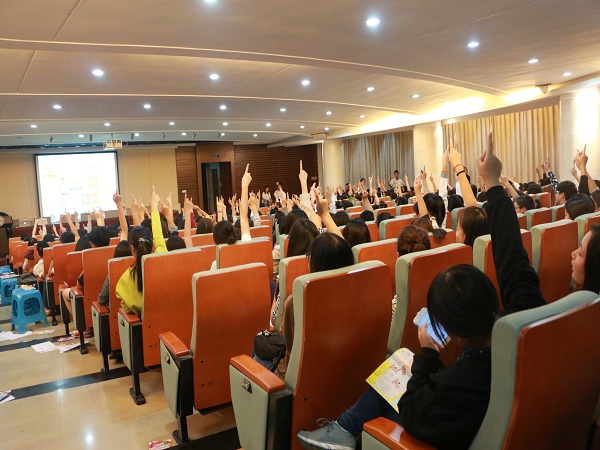 他将自己的学习经历和感悟与同学们进行了分享,并寄言:“一切优秀都是与安逸的生活相违背的。”他鼓励同学们努力学习英语,走出去,观世界。讲座尾声还抽出了10名幸运观众并赠送了礼品,现场气氛一度达到高潮。