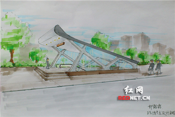 (“人与自然地铁出入口”体现了湖南师大路旁的香樟树概念。作者:张冰洁、李璐)