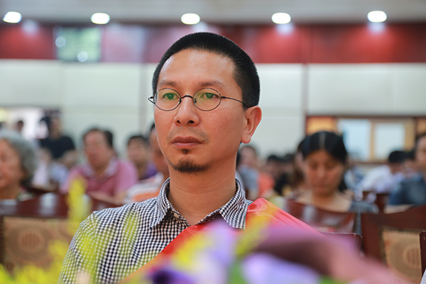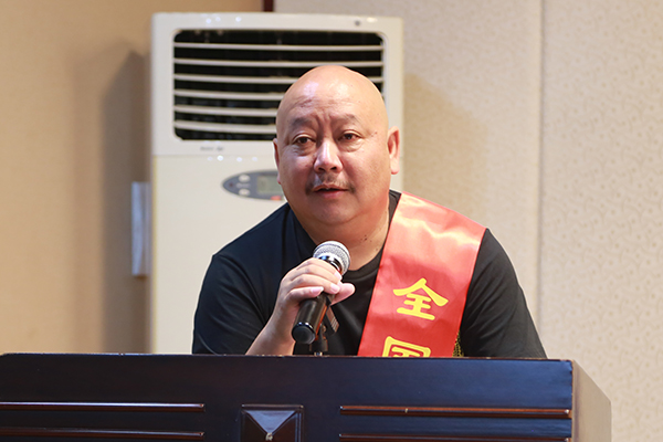 获奖教师代表、全国师德标兵段江华发言。他回顾了自己的求学、从教经历,认为师者不仅要有渊博的学识,更应有高尚的道德情操以及宽厚仁慈的爱才之心。他表示要向更多其他优秀教师学习,以师德标兵的标准要求自己。