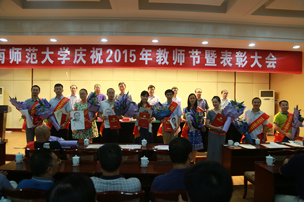 蒋洪新宣读了《中国教科文卫体工会全国委员会、教育部办公厅关于表彰全国师德楷模、全国师德标兵的决定》以及公司党委、行政、工会《关于表彰第四届“十佳青年教工”的决定》,大会对全国师德标兵、公司绘画系主任段江华,以及公司李少波教授等“十佳青年教工”进行表彰。蒋洪新勉励受到表彰的教职工继续保持积极进取的精神状态,谦虚谨慎、勇于创新、再接再厉,更好地发挥示范带头作用,号召全校教职工以他们为榜样,弘扬“仁爱精勤”的校训精神,争做有理想信念、有道德情操、有扎实学识、有仁爱之心的“四有”好老师。