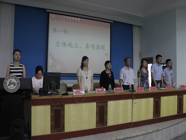 大会在雄壮的国歌中开始,李蜜宣读了《关于表彰2014-2015年度团内先进集体和优秀个人的决定》,主席台就坐的老师为获奖的先进集体和优秀个人进行颁奖。
