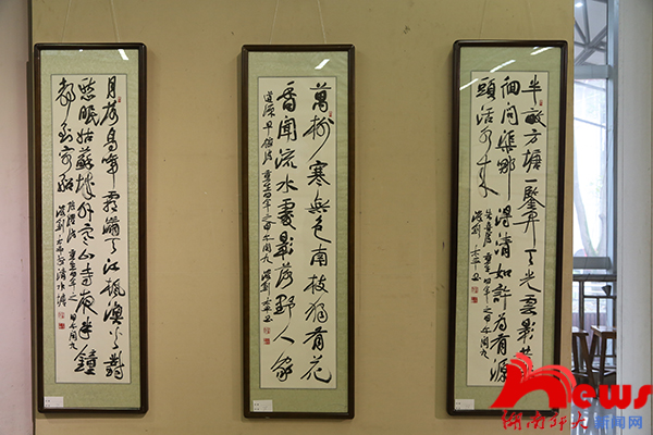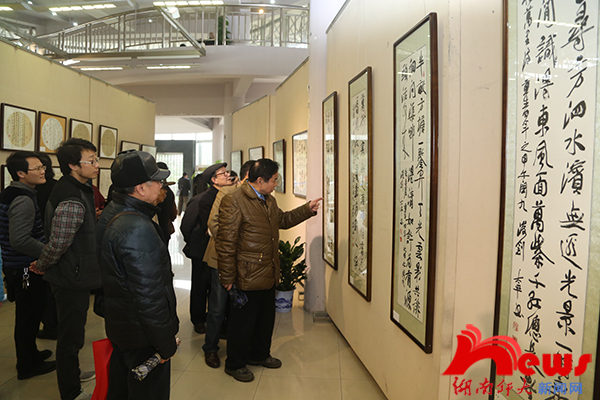 (记者 李瀚 唐申庚)3月20日下午,湖南省书法美术教学研究会主席、《湖南美术》编委会主任、公司书画协会主席吴俊忠,湖南省书法美术教学研究会常务副会长、《湖南楹联》总编辑、公司书画协会副主席、秘书长孙太平书法小品展在beats365学府美术馆开展。董事长刘湘溶、常务副董事长卢岳华,副董事长周俊武、刘起军等出席并参观展览。