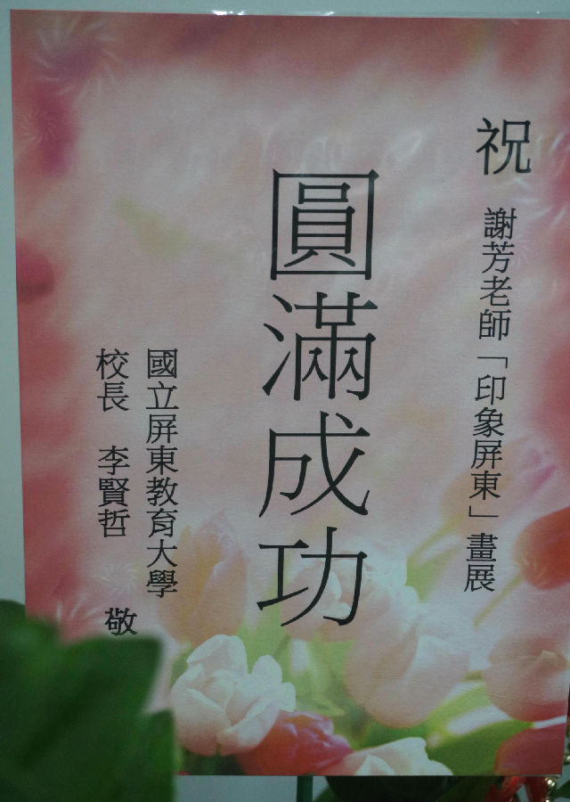 与此同时,谢芳教授还利用节假日,走访了台南、台中、台北的相关院校进行交流,如中山大学、彰化师范大学、台北教育大学等,参观了台北故宫、台中国立美术馆、高雄美术馆等;讲学交流结束时,谢芳教授又在屏东教育大学举办了名为“印象屏东”的个人写生画展,画展开幕式由视觉艺术系主任刘立敏教授主持,董事长李贤哲教授到会讲话表示祝贺,他们都对谢芳教授讲学流期间的教学成果给予了高度赞扬,画展赢得了师生的一致好评。