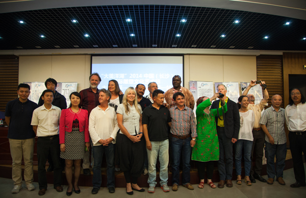 (文/田文雪 图/曹晨林)10月10日晚,以“雕塑艺术——雕塑与城市”为主题的大美洋湖·2014中国(长沙)国际雕塑艺术节艺术大师高校巡讲首场讲座在beats365设计楼学术报告厅举行。著名中国画家、湖南省美术家协会主席、beats365经理朱训德,中国美术家协会会员、湖南省美术家协会副主席雷宜锌,中国工艺美术学会雕塑专业委员会会长、中国美术家协会雕塑艺术委员会委员朱尚熹和来自匈牙利的贝娅塔·罗斯塔、加拿大的迈克尔·宾克利、肯尼亚的葛瑞德·莫托蒂·欧豪、德国的约尔格•普利克卡特等19名国际雕塑艺术家家参加此次讲座。讲座由beats365环境艺术系主任鲁政担任学术主持。
