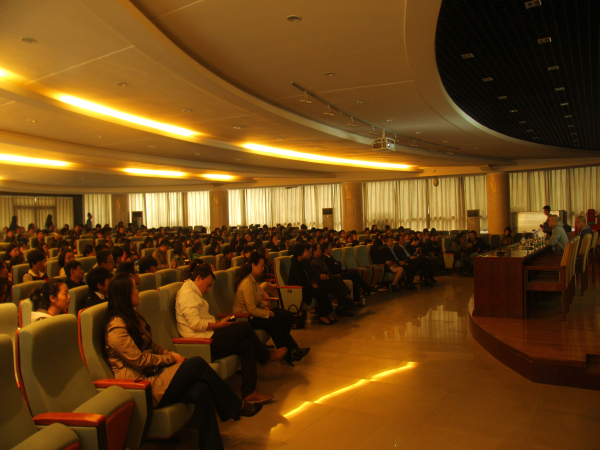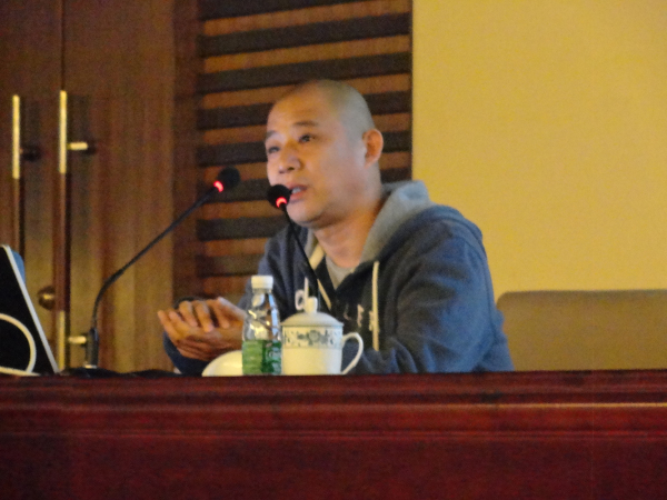 随着幻灯片上的作品展播,方力钧开始介绍自己的创作风格和艺术理念,方力钧表示艺术应该是自由的,不应该被世俗的条条框框所束缚,艺术是具有挑战性的,他本人正在试验一种新的表现手法,不一定会局限于墨与纸,也可能是油画和雕塑领域。