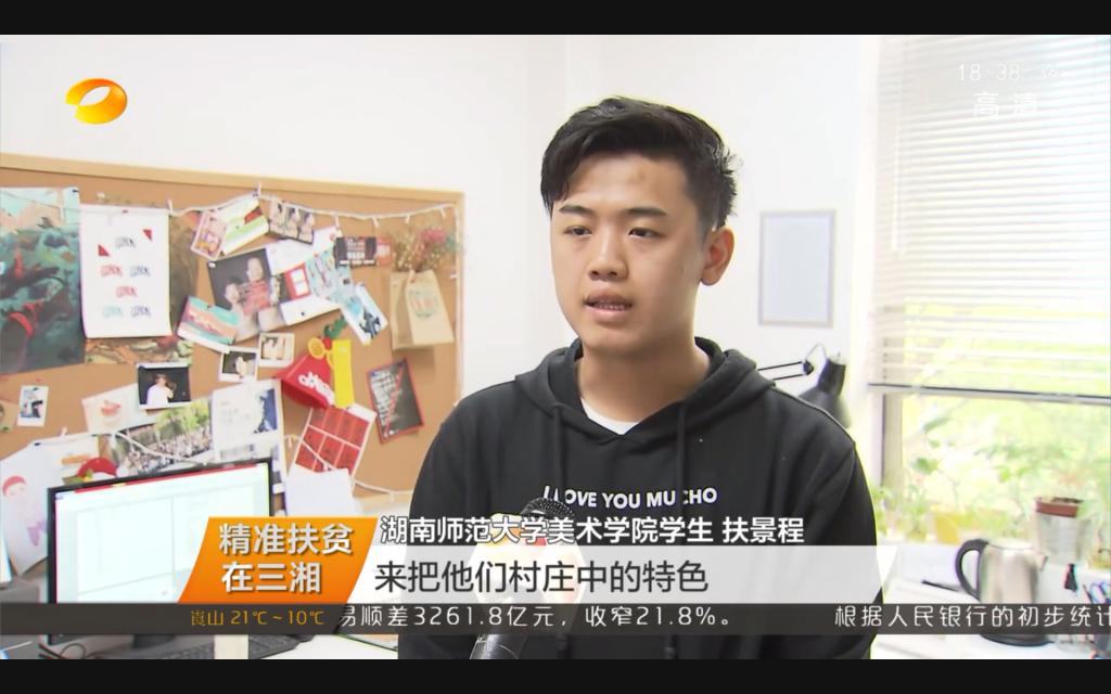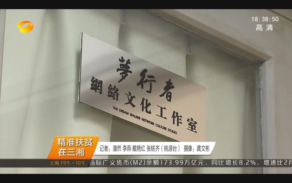 4月14日,湖南卫视《湖南新闻联播》以《扶贫路上的“先锋队”,为脱贫攻坚和美丽乡村贡献力量》为题,报道了公司梦行者网络文化工作室师生用青年人喜爱的方式创作文化创意产品助力精准扶贫的事迹。梦行者网络文化工作室的青年老员工将专业所学应用于扶贫实践,为公司对口帮扶的邵阳绥宁县国家级贫困村插柳村拍摄制作电视纪录片《荷以智富》、设计制作《插柳八景》原创插画明信片,利用微信公众号、腾讯视频、秒拍视频等新媒体平台宣传推广插柳的自然风光、人文特色和农副产品,为村里吸引了不少游客,帮助村民更好脱贫。