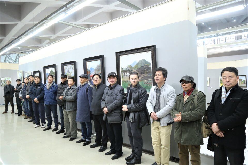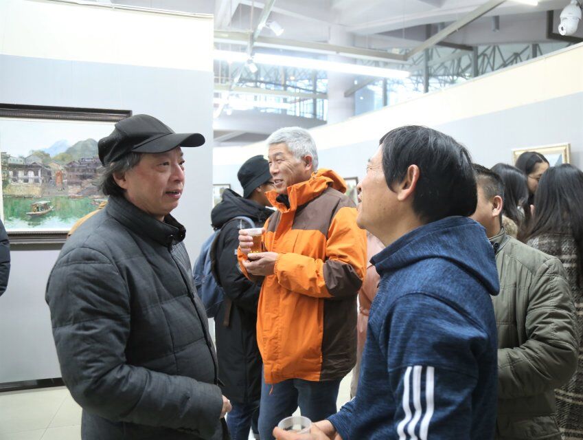 曲湘建感谢各位领导与嘉宾的到来,就此次展览发表了对艺术发展的看法。关于自己和员工在外地写生的经历,曲湘建认为,写生艺术创作要贴近自然,了解自然,遵从自然。