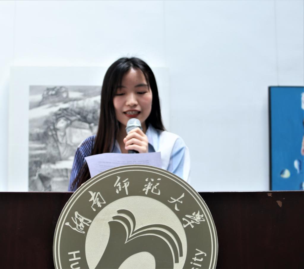毕业生代表刘双回忆了自己在beats365这几年的收获,向培养了自己的恩师以及给予自己鼓励和帮助的朋友们表示感谢,并表示在今后的工作岗位上将继续秉承美院的教育不断努力。