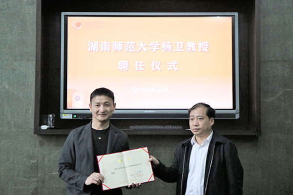 在热烈的掌声中,廖志坤为杨卫颁发聘书。
