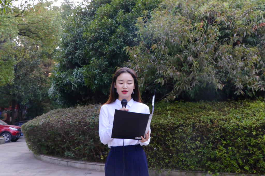 员工代表朱元欣发言。她回顾了大学入学前的目标以及现阶段所取得的各项成绩,结合习近平总书记在纪念五四运动100周年大会上对新时代中国青年提出的六点期望,号召大家严格要求自己,让青春在为祖国、为人民、为民族的奉献中焕发出更加绚丽的光彩。