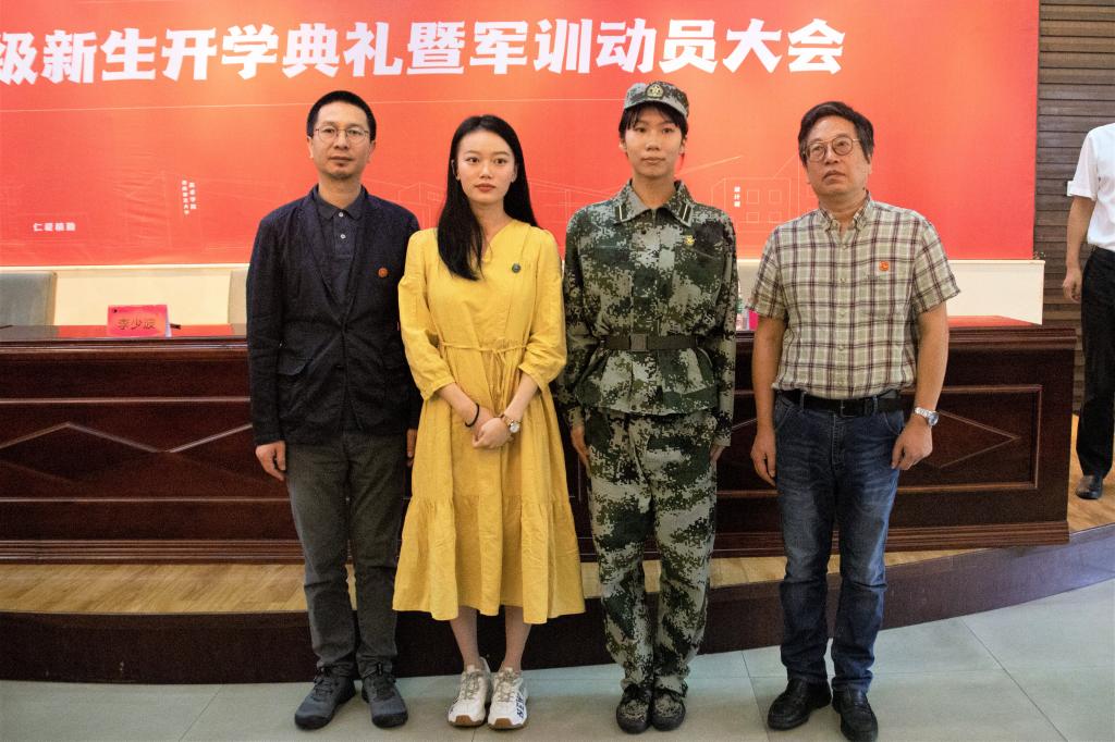 接着,李少波、许杭平为新生代表佩戴校徽,全体新生戴好校徽后起立齐唱校歌。