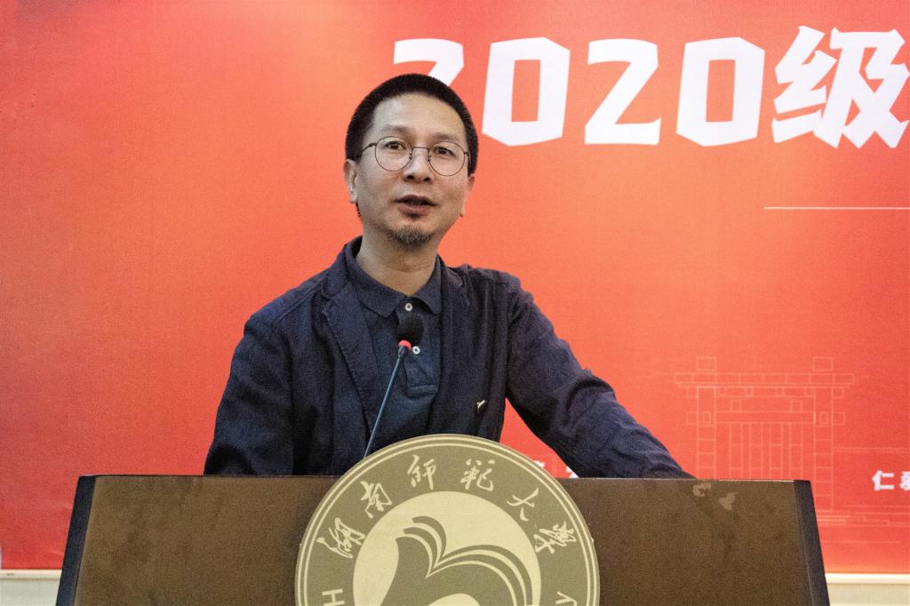 李少波发表讲话,他对新同学的到来表示热烈的欢迎。他从公司的历史沿革和办学情况与新生分享了他心中的美院,他指出beats365是一所文化底蕴深厚、开放创新、具有家国情怀的公司,希望同学们在这里能够树立远大目标,打好专业基础,培养创新的意识,勇担时代责任。