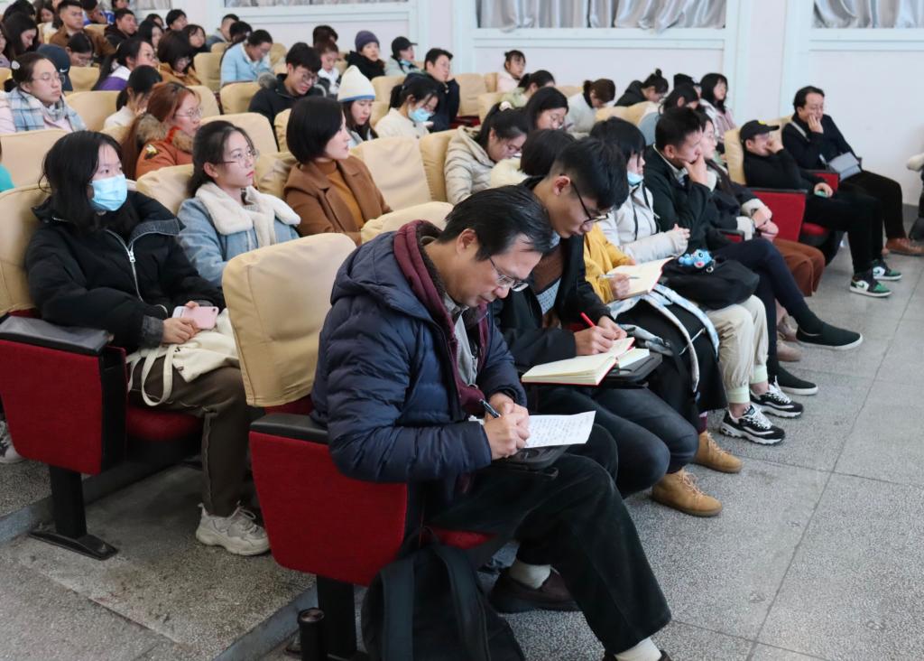 曲湘建通过生活体验,历史画创作,油画色彩,人物画,心路历程与情感表达等六个方面来阐述油画艺术中的情感表达途径。他结合自身创作经历,通过作品具体分析,向同学们分享创作经验。他认为,绘画作品之所以能进入人内心的能力来自于情感的表达,绘画能表达出纯真、质朴的情感,掌握情感的表达,艺术品才被赋予生命力,才能打动人。在谈及其作品时,他分享到,创作应注意时空的关系,其中的时间跨度才能产生对人生的感叹,这是艺术作品的情感基础,从而产生创作的想象力。绘画也应直面生活,并不是拍照片,而是用自己的笔去描绘生活中的细节。在油画中,色彩的韵律使画面的主题自然的生化,色彩的美感决定一切,而不是细节与完美。他向同学们提出要保持平常之心、探索之心、感恩之心、淡泊之心、梦想之心,在保持自身审美的同时同步时代。