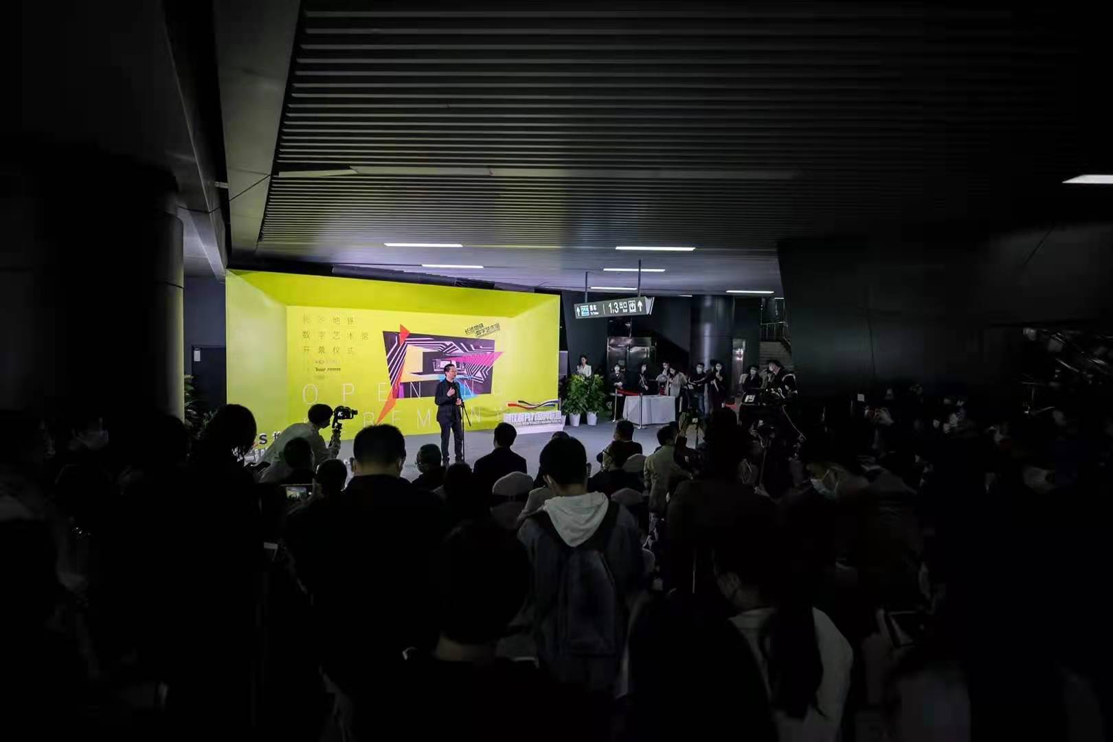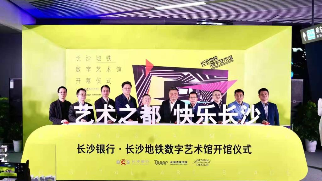 长沙地铁数字艺术馆的首次展览,展出了主题为“快乐长沙”的艺术内容,将星辰、五一路、红辣椒、岳麓书院等代表长沙的概念符号与快乐、幸福等元素结合起来,以抽象化的数字媒体艺术形式呈现在地铁空间之中。