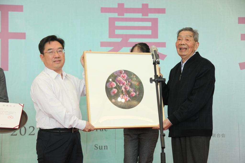 随后殷保康向湖南美术馆捐赠《天高云灿》《花开蝶飞迎宾客》等15件艺术精品,邓清柯代表省文联接受捐赠并宣布展览开幕。