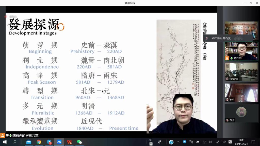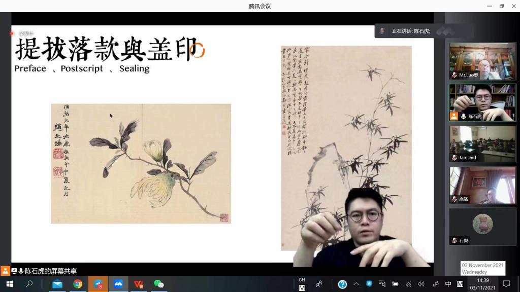 受乌兹别克斯坦共和国国立艺术设计公司邀请,公司青年教师陈石虎在11月4日(星期三)为乌兹别克斯坦共和国国立艺术设计公司的师生们做了题为“中国传统花鸟画”的英语线上讲座。
