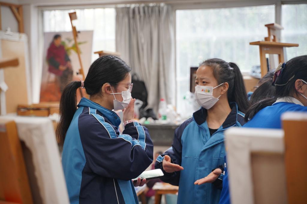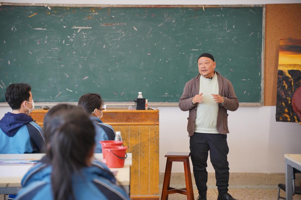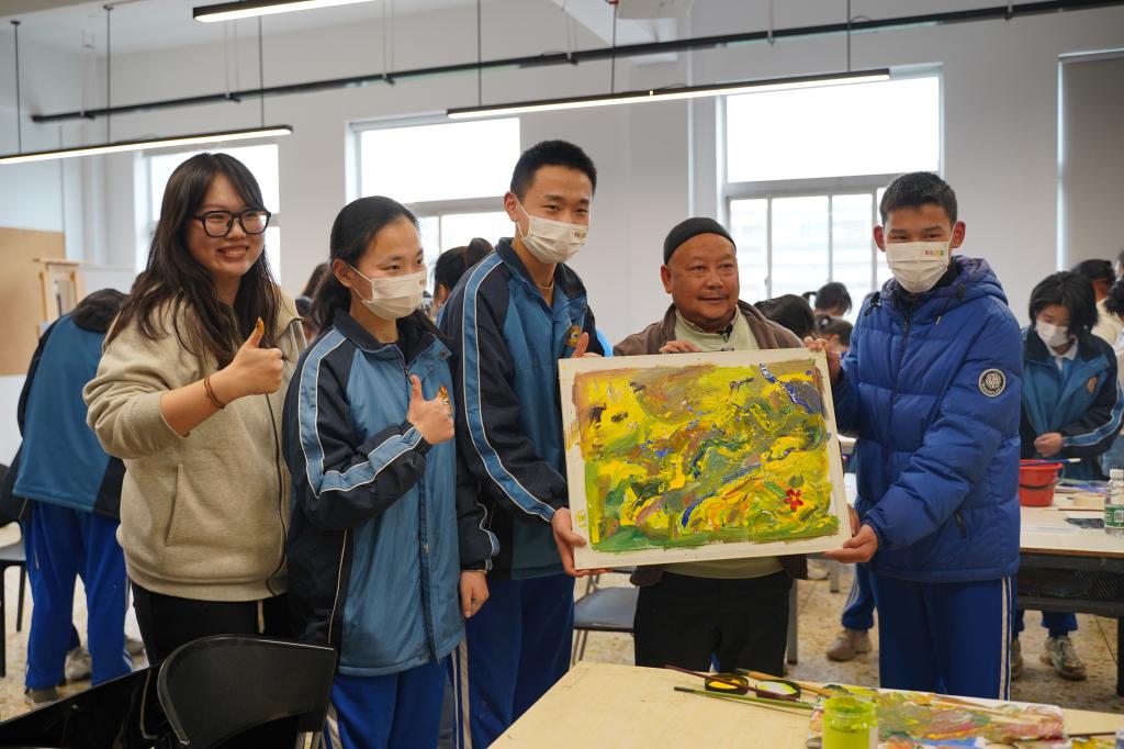 参观活动结束后,段江华为他们进行授课。段江华以自己的创作为例,从作品的立意、构图、色彩、艺术表现阐释了扎根本土、服务人民、服务乡村振兴的新时代美术职业特点。他以色彩的情感表现为切入点,以“遇见春天”为主题,组织聋哑高中生即兴创作体验色彩语言的感染力。通过教学交流,聋哑高中生酣畅淋漓的色彩、富有表现力的真诚用笔,表达着对于美术职业的朴素认识,画笔为心声,追求并表达“善”“美”,是美术职业秉承的人文精神。
