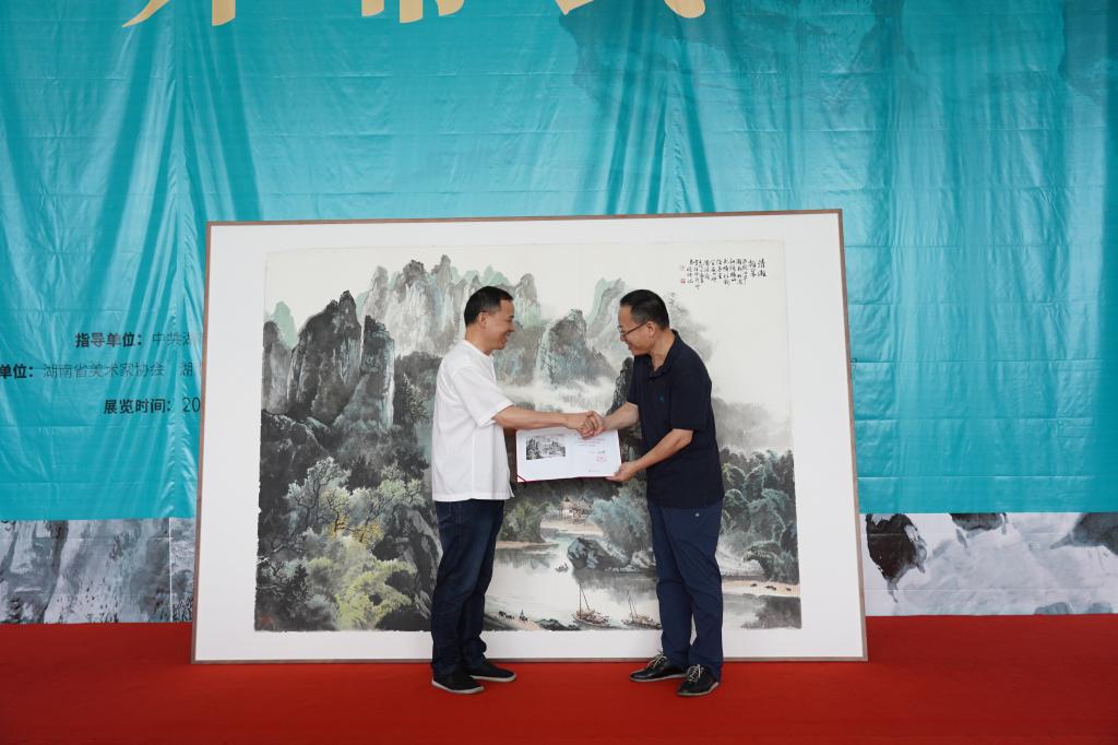 开幕式现场还举行了作品捐赠仪式,曾晓浒先生的儿子、湖南师大beats365副教授曾进现场捐赠了曾晓浒先生《清漓拥翠》《平粜阻禁》《春在枝头已十分》等18件艺术精品,湖南美术馆馆长田绍登代表湖南美术馆接受捐赠,由湖南美术馆永久收藏。