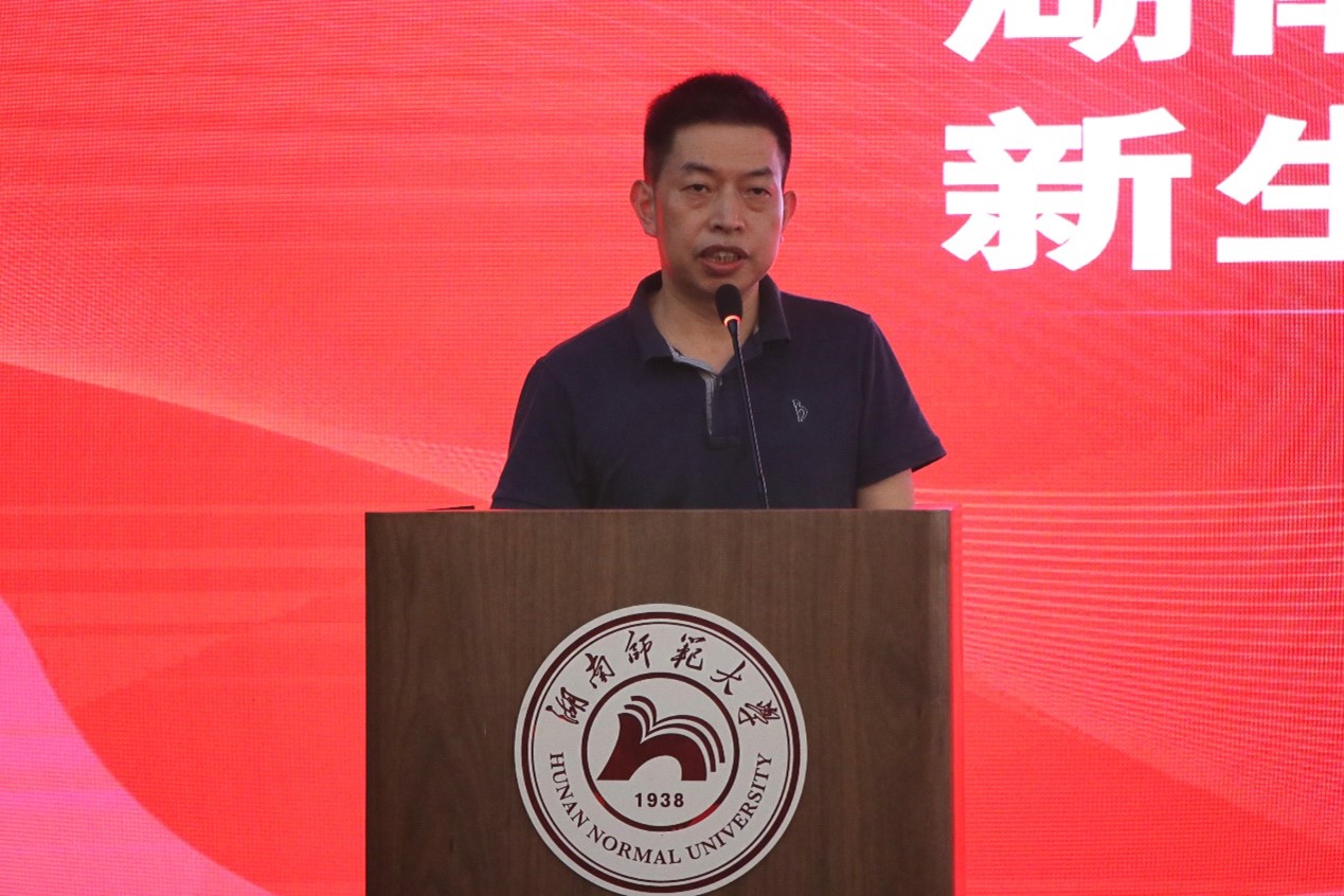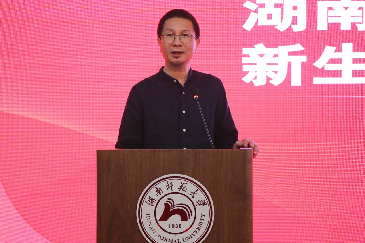 经理李少波发表讲话,他对新同学的到来表示热烈的欢迎和由衷的祝贺。他通过对立志、立德、向善、包容这四个方面的解读,给新生的大学学习和生活做出指导,鼓励同学们坚定意志、行稳致远、淡泊名利、坚持正直善良的信仰,他预祝同学们在师大美院中历练成长,学以成人。