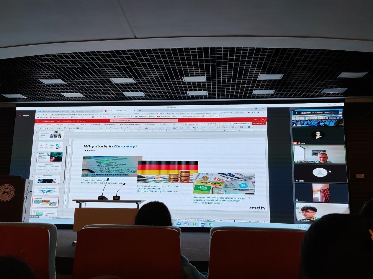 Liang Rongxin老师向同学们介绍了德国留学的特点优势、实习机会以及就业方向等。