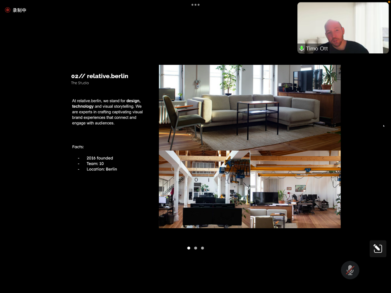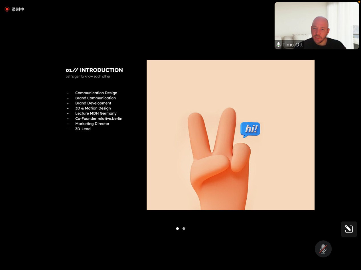 公司创始人兼动画设计师Mr.timo.Ott从德国工作室运营流程、公司项目实例和公司项目管理和设计创意三个方面进行分享。据Mr.timo.Ott介绍,该公司成立于2016年,由开始的两人逐渐扩展为十人,公司主要专业为3D和动作设计,技术应用于2D、3D、虚拟现实、科技监测等多个领域,项目实例丰富、范围广泛。工作室注重培养员工创意思维的,激发设计灵感,为提高员工工作的舒适度和效率性,曾整体更换一次工作环境。