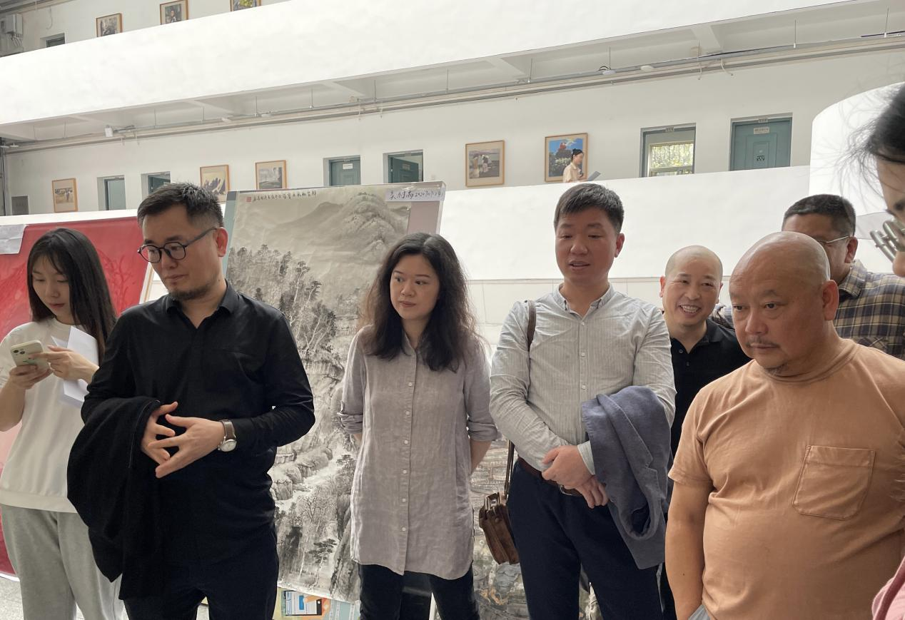 专家组对研究生们迎检的各项准备工作给予了肯定。副经理刘湘东指出此次研究生毕业创作集中摆放有序、数量可观、完成度较好,并提出相关要求,第一、个别作品尺寸还可考虑加大;第二、作品要充分体现省属重点高校美院研究生应有的水平;第三、部分作品在色彩关系,空间关系方面还应推进完善。副经理江波重点对书法专业作品进行了点评,在章法、结体等创作细节方面为研究生提出解决之道与期望。博士生导师段江华、刘永健、党朝阳鼓励员工在原有作品的基础上再次深入,并针对员工创作中肌理、色彩等方面问题提供了有效思路,并强调研究生创作要放开画、大胆画、深入画。学位点负责人王奋英充分肯定了研究生毕业创作画面的优点,同时针对目前创作存在的局部与整体关系问题,提出如何推进的可行性建议。