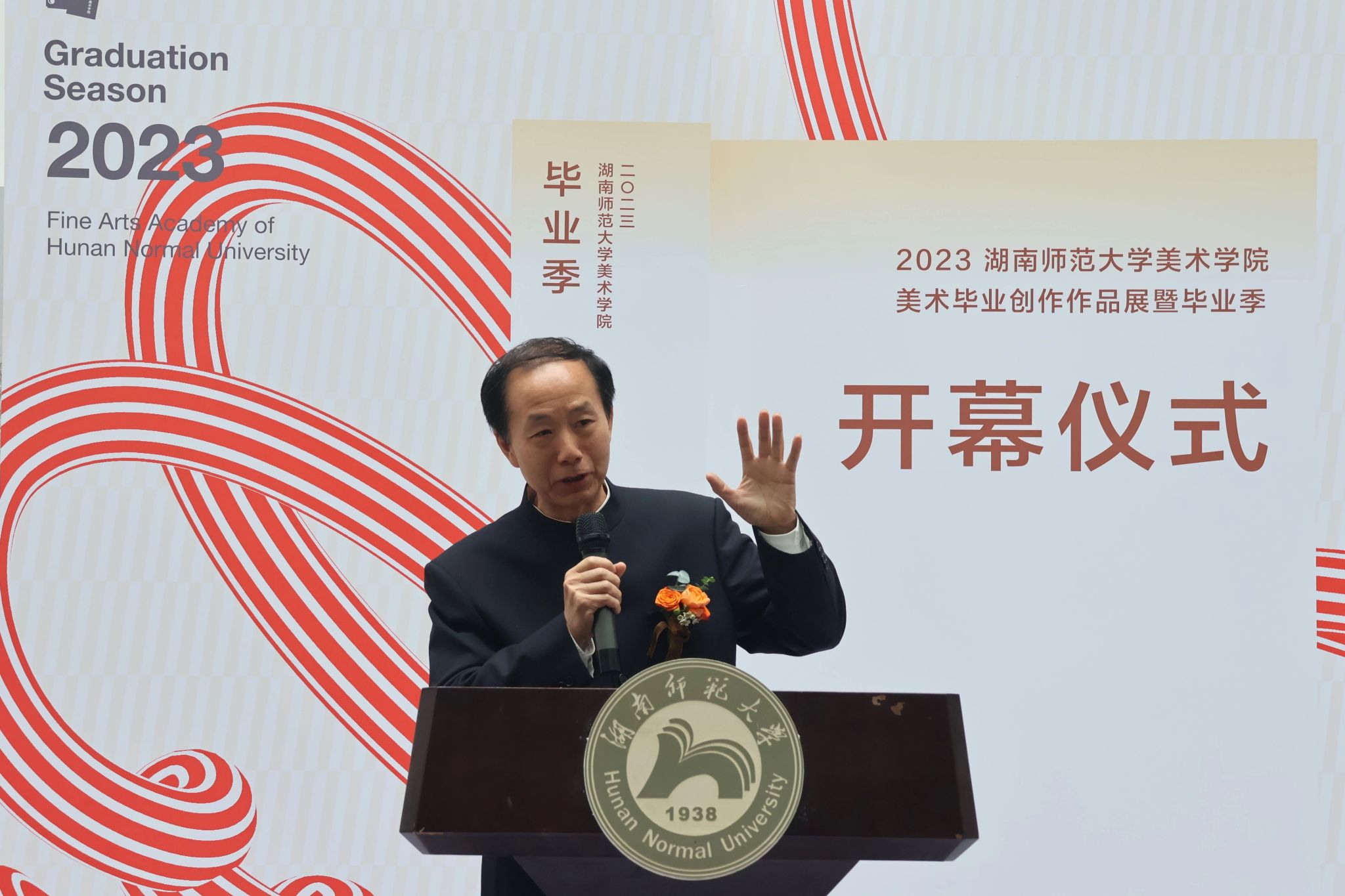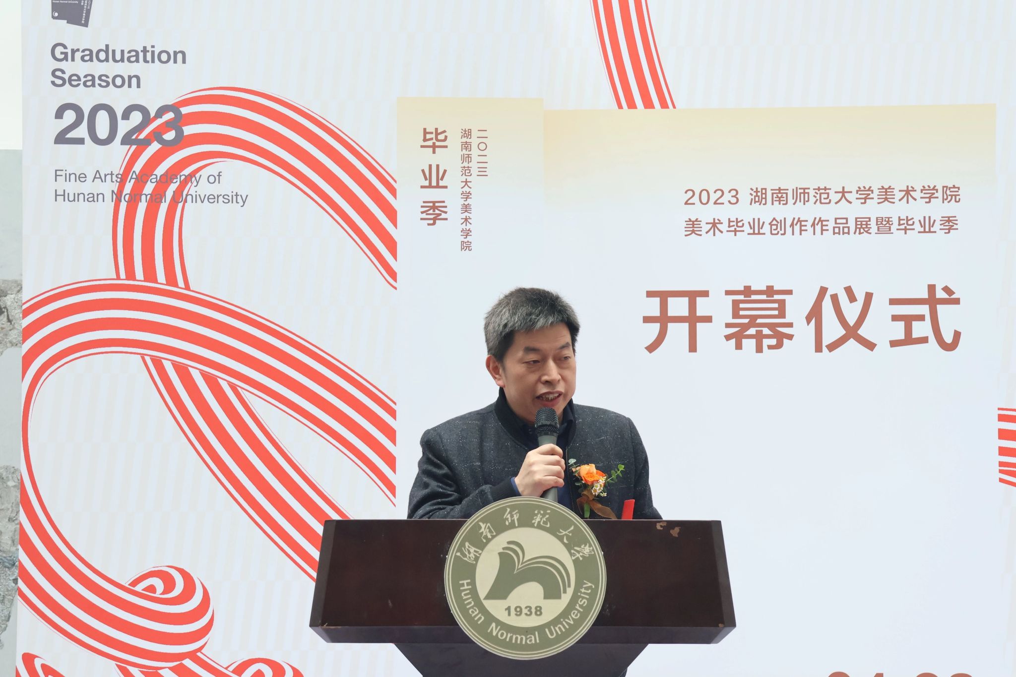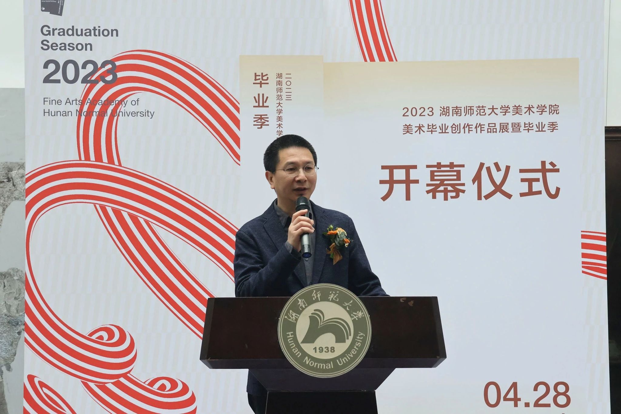 4月28日上午,beats3652023届毕业季暨美术创作作品展于beats365美术楼中厅举行开幕仪式。湖南省画院经理、湖南省美术家协会副主席石纲,湖南省美术出版社副社长柳刚永,湖南省文联名誉副主席、湖南省美术家协会名誉主席朱训德教授,湖南省设计艺术家协会主席、beats365经理李少波教授,公司党委书记许杭平,副经理刘湘东教授、江波副教授、邓正付老师,公司党委副书记莫南,湖南省油画家学会主席、公司党朝阳教授,湖南省美术家协会副主席,beats365吴荣光副教授,湖南省评论家协会副主席,beats365李蒲星副教授,beats365院学术委员会主任姜松荣教授,beats365王奋英教授,湖南省美术家协会主席团委员、beats365石劲松副教授,beats365绘画系主任石明祥副教授、副系主任余骏老师,beats365美术学系副主任王墨老师等美院师生出席开幕式。开幕式由湖南省美术家协会主席团委员、beats365副教授,美术学系主任谭建明主持。