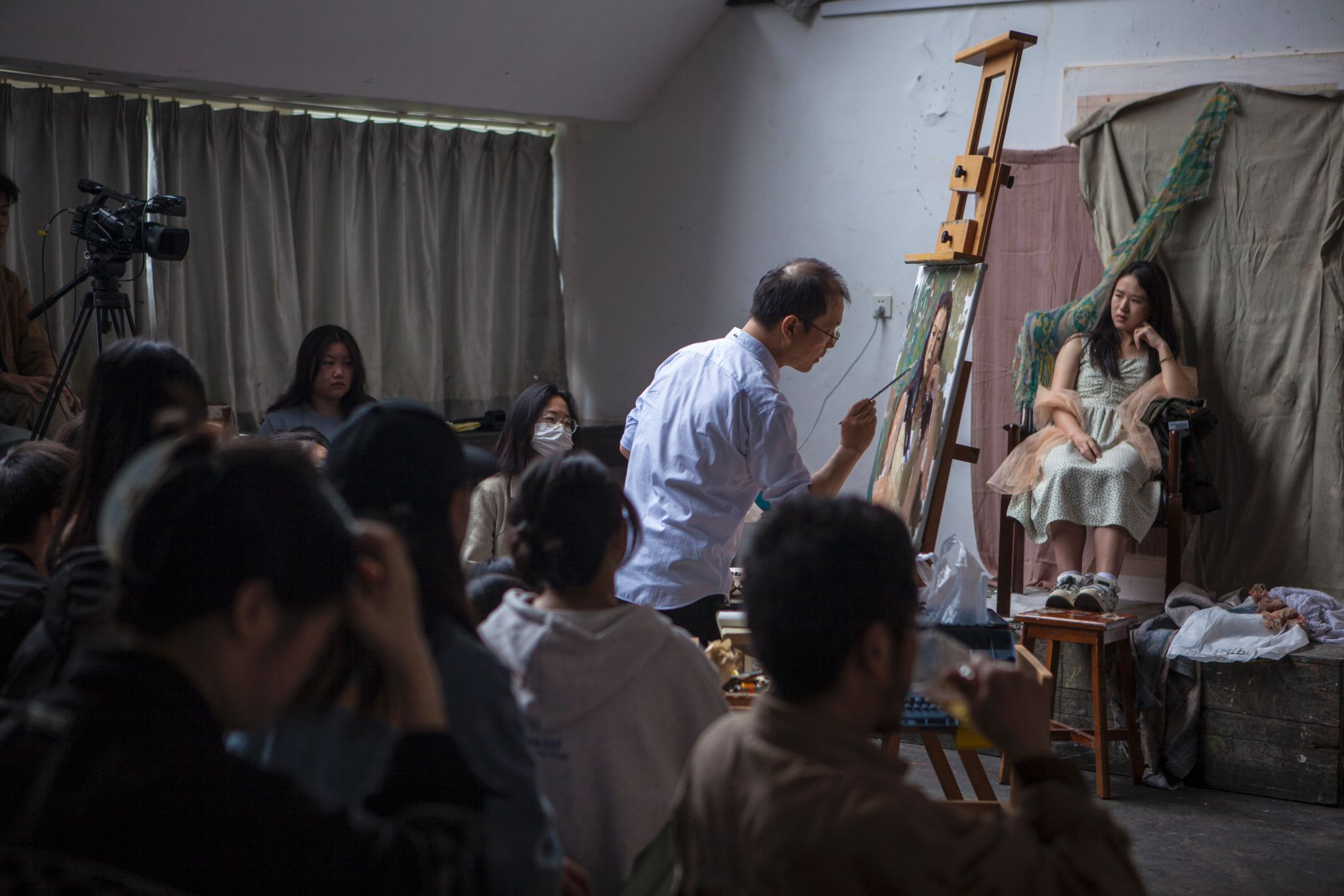 贺羽教授与湖南师大也有很深渊源,1986年5月,未满十五岁的他就是在当时新落成的美术楼参加了中央美院附中南方考区的招生考试。时隔37年,同样是五月,贺羽重回这里,在四楼天窗教室为师大的美术学子们进行了这场生动而难得的油画写生观摩。