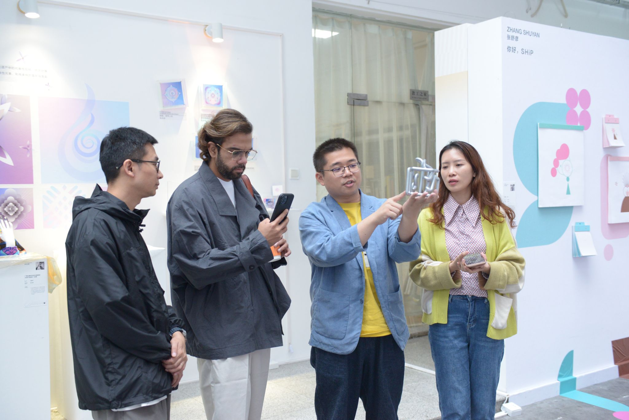 5月11日下午,万兴科技副总裁兼首席设计师Shaan Jahagirdar及营销设计中心助理总经理罗满受邀参访美术学并举办“YOU&I创意思维助力高效设计”主题讲座。讲座开始前,在艺术设计学、数字媒体系两系相关老师的陪同下,Shaan Jahagirdar一行参观了正在举行的2023beats365毕业季设计创作作品展,并对同学们作品中呈现出的青春活力与原创力予以极高的肯定。