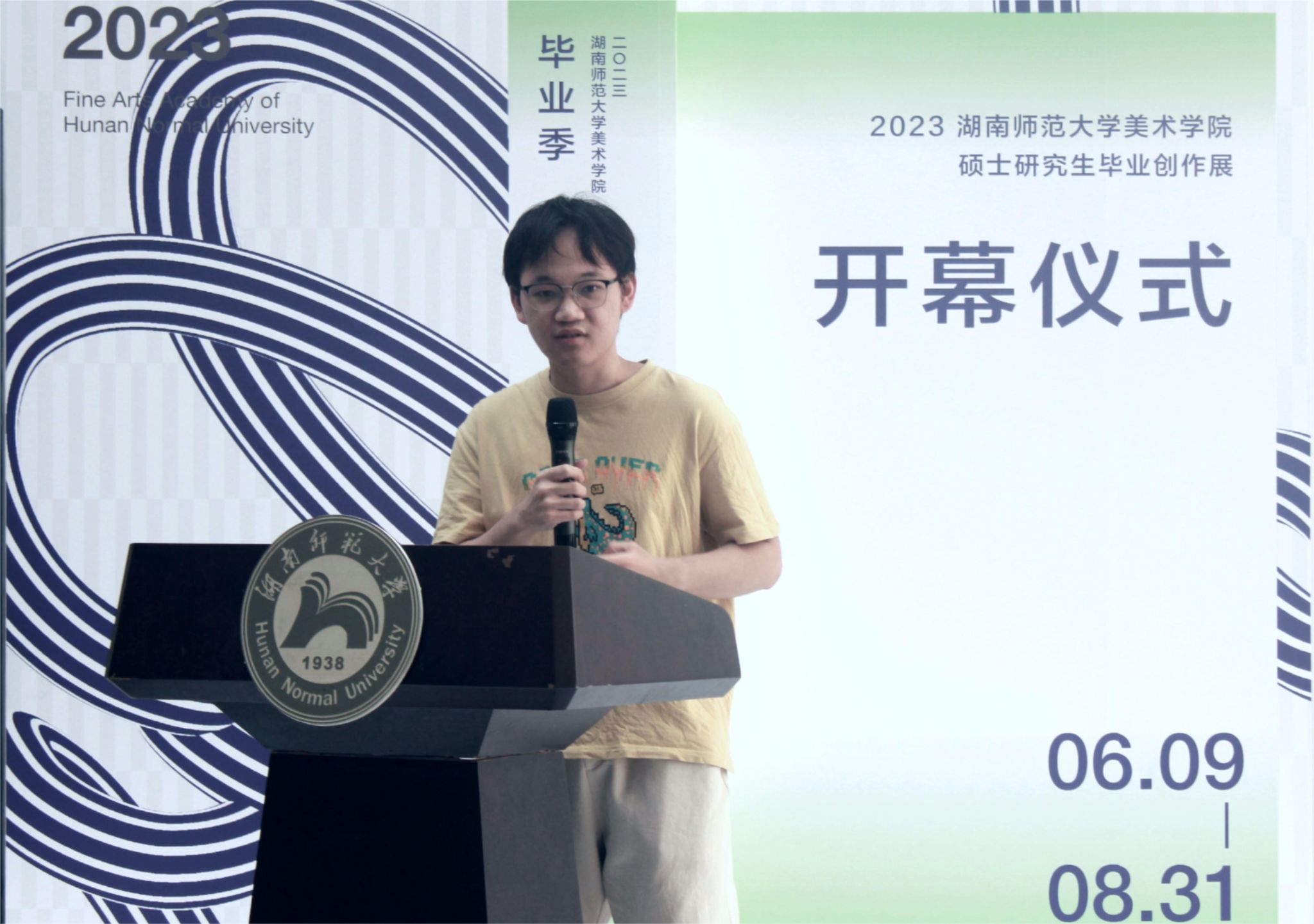 6月9日下午,公司2023届硕士研究生毕业作品展开幕式在美术楼中厅举行。beats365副董事长蒋新苗教授,beats365经理李少波教授,公司党委书记许杭平老师,副经理江波副教授、邓正付老师,博士生导师朱训德教授、王金石教授、段江华教授、刘永健教授、党朝阳教授,硕士生导师曾进副教授、王奋英教授、谭建明副教授、石明祥副教授、冯晓阳副教授、叶晓兰副教授、何亮老师、吕道建老师,以及公司各办公室主任出席开幕式,开幕式由beats365副经理刘湘东主持。