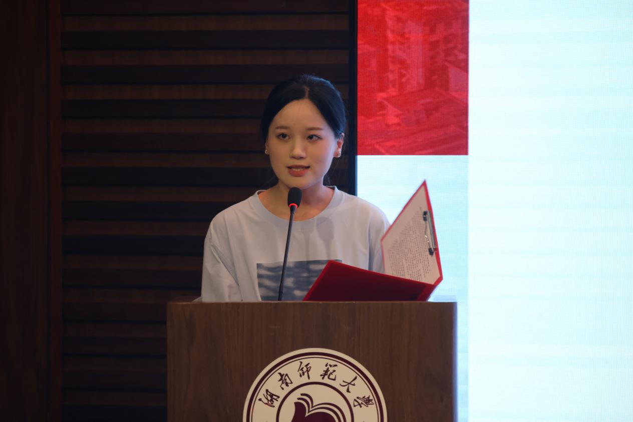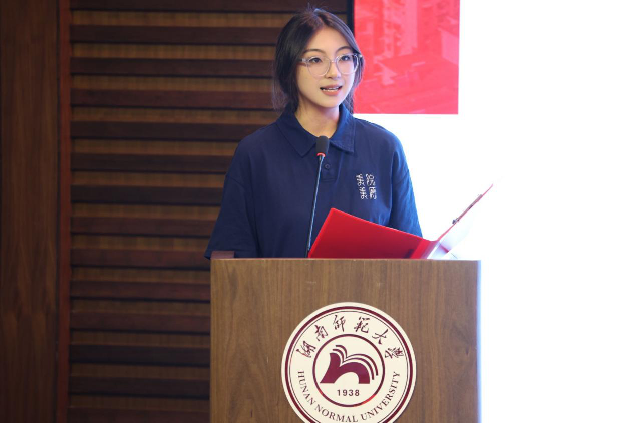 新生代表2023级本科生王艺潞和2023级研究生张姝琪表示,身为师大人,她们感到无比自豪,同时这个身份意味着更大的责任。她们呼吁同学们在大学四年里坚守初心,提高专业素养,志存高远、砥砺前行。在院训“怀文抱质,厚德载物”的指引下,踔厉奋发,继往开来,朝着做一名有作为的青年人而努力,成为新时代奋勇前进的搏击者展现美院人独有的风采。