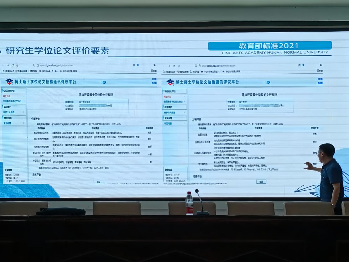 刘湘东教授首先向2023级研究生新生们介绍了公司的专业学位点,详细列举出美院的教育学学位点与艺术学门类学位点,如:课程与教学论、学科教学、美术学、美术教育、绘画理论研究、书法理论研究等。进一步说明研究美术实践方向与美术理论方向的实质区别。随后刘湘东教授还为新生举例梳理了专业硕士创作报告的写作流程和注意事项。
